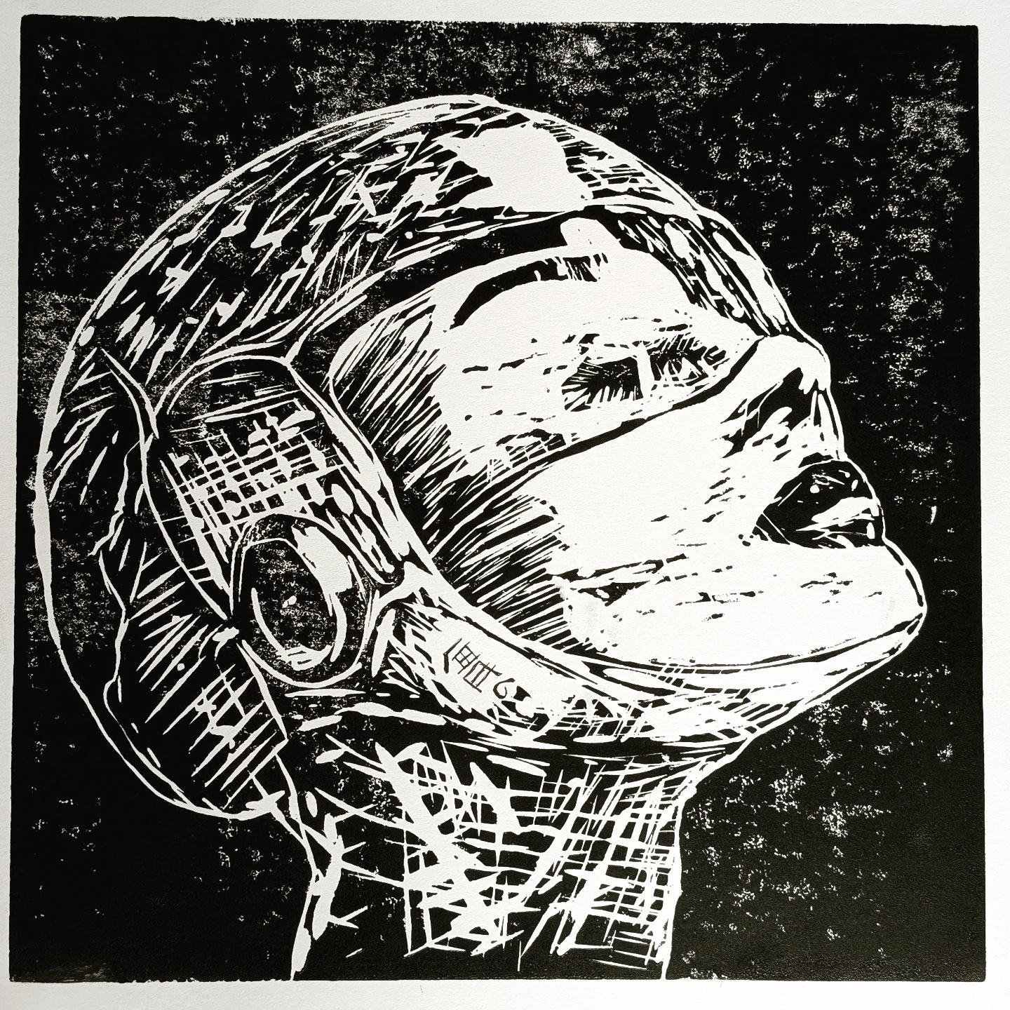 • Available in standard black • High-quality relief hand cut print • Dimensions: 12 x 12 inches • Ink: Gamblin etching ink • Paper Weight: 140g pansion light natural paper • Shipping: Ships domestically. Delivery times vary based on location.