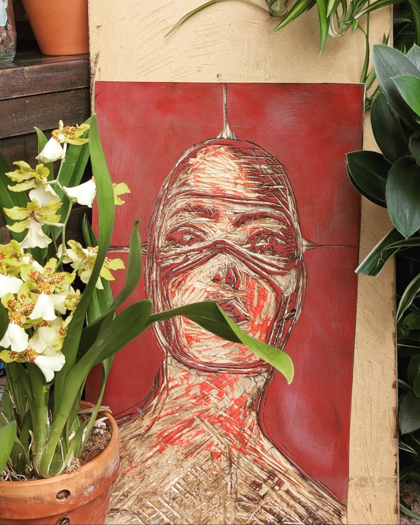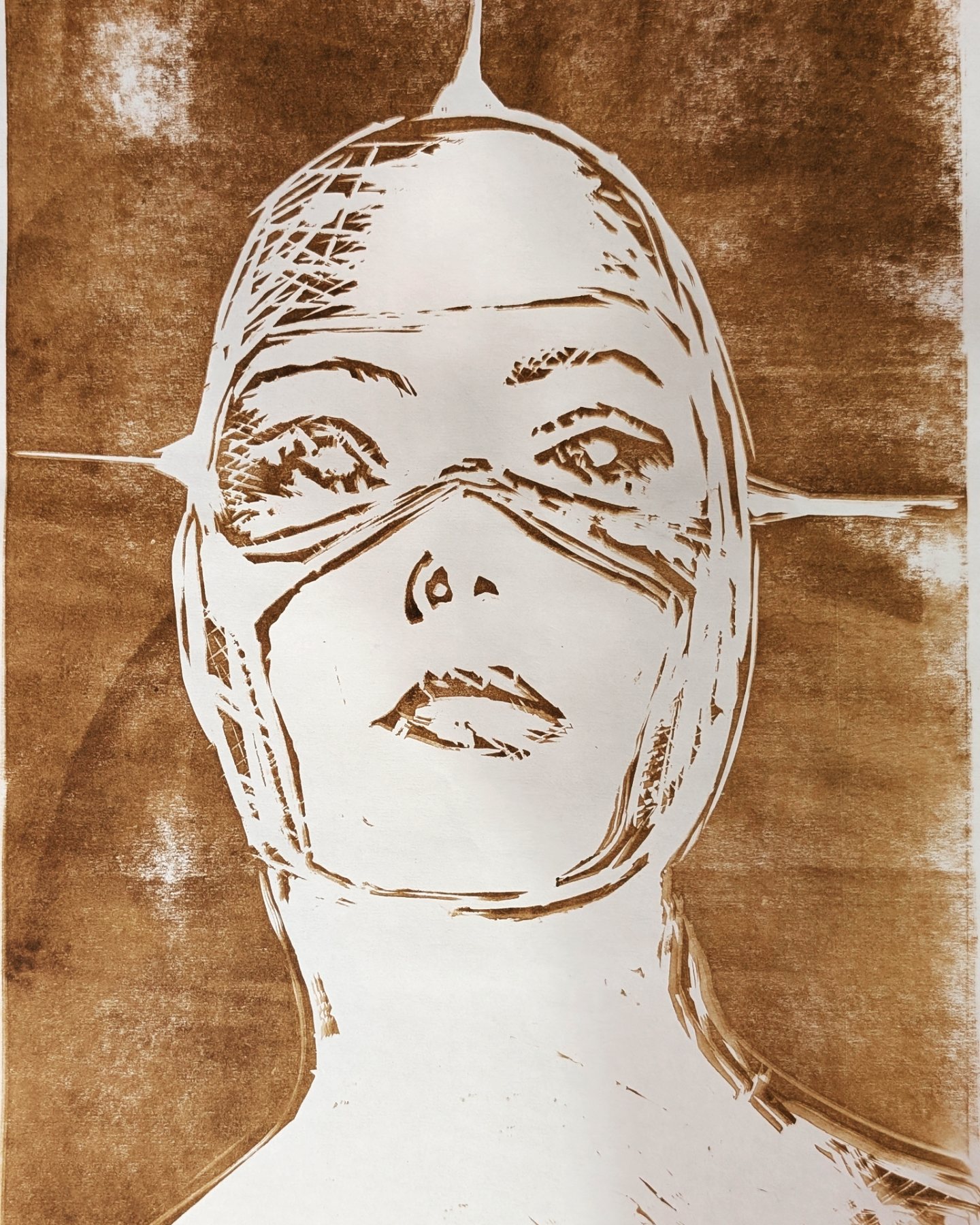 > style: Relief cut print printed with gamblin etching ink